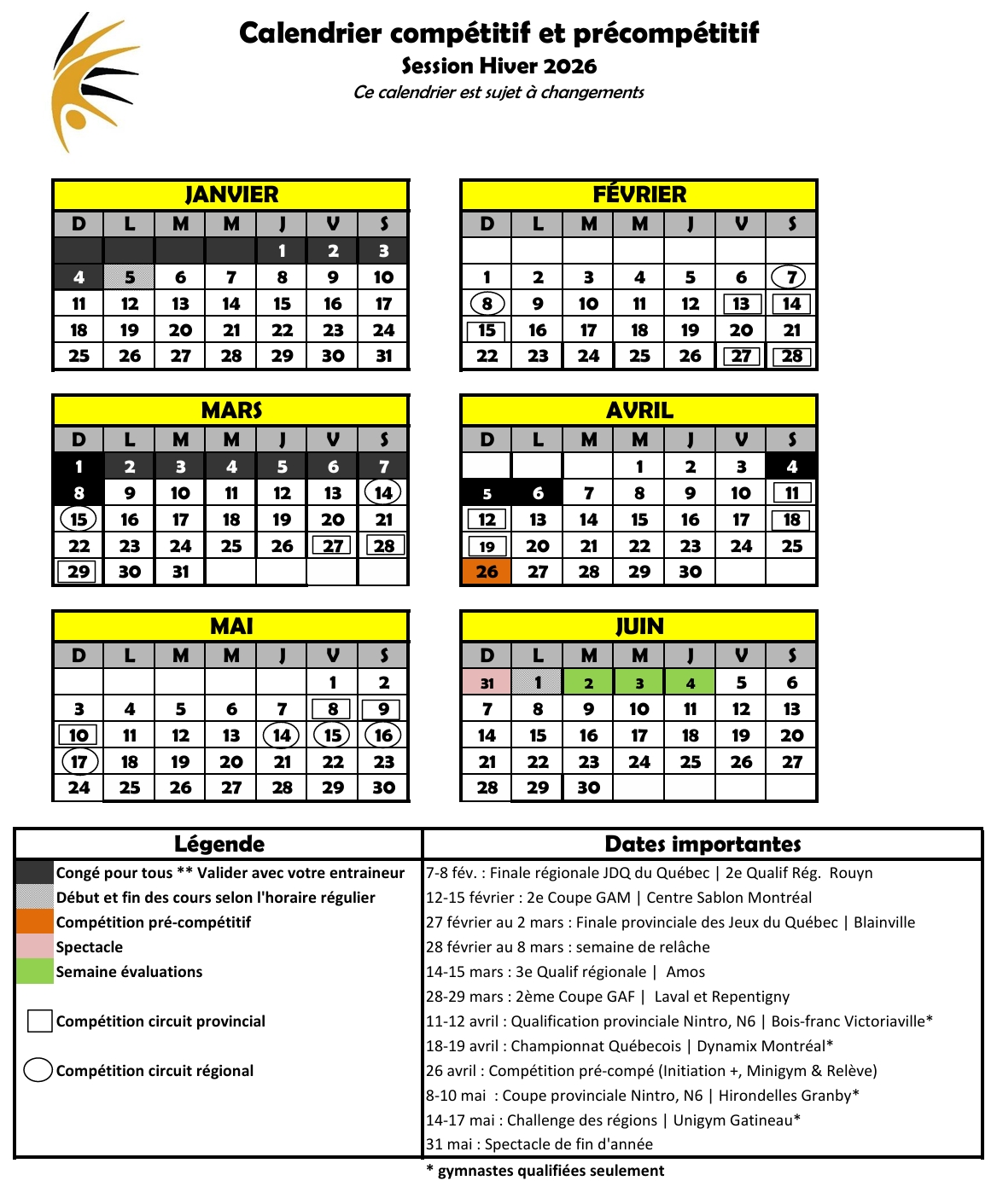 Horaire et calendrier provisoire des groupes pré-compétitifs et compétitifs 2024-2025.